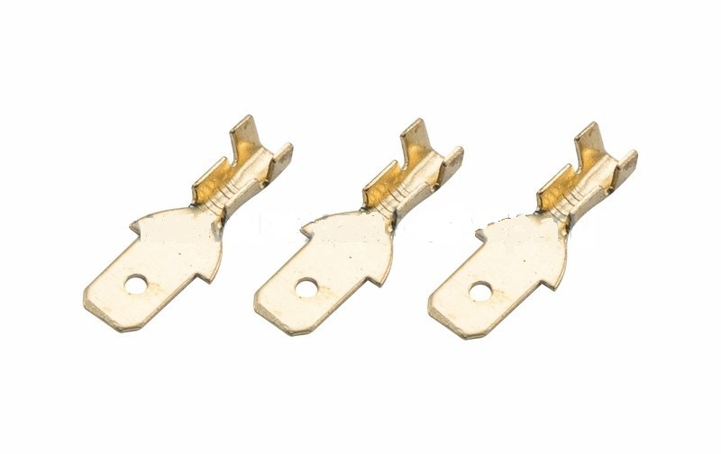 КЛЕММА ПЛОСКАЯ (КП штекер - 4.8мм) 1-1.5мм² (DJ616-4.8*0.5B) REXANT предназначена для создания качественного подключения электрооборудования или соединения проводов между собой, которое при необходимости возможно разъединить без лишних усилий. Такая клемма используется для оконцовывания многожильных медных проводов при монтаже мобильных электрических контактных соединений на подвижном составе (автомобиле-, вагоно-, самолето- и судостроении). Клемма плоская не изолированная (штекер) REXANT изготовлена из латуни. Обжатие производится специальными пресс-клещами (HT-202; HT-230; HT-301) по жиле и по изоляции, что обеспечит максимальную прочность соединения с проводом. Каждая клемма имеет отверстие, служащее фиксатором замкового типа с гнездовым разъемом. Основные характеристики:
